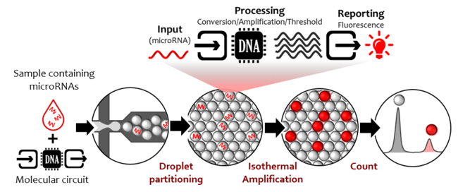 Isothermal digital detection of microRNAs using background-free molecular circuit, Science Advances, 2020 (DOI: 10.1126/sciadv.aay5952)