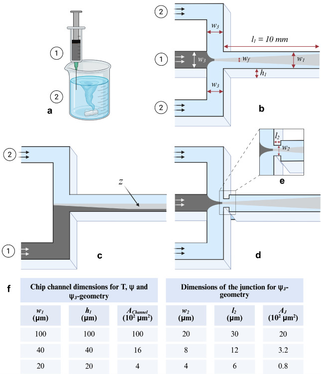 Microfluidic-assisted nanoprecipitation provides precise control over formulation conditions, enabling for the design of nanoparticles with highly tunable properties. This study explores the influence of channel geometry, flow dynamics, and polymer concentration on the size and polydispersity of poly(butylene oxide) (PBO) nanoparticles. PBO is a hydrophobic polymer with a low glass transition temperature (Tg = –71 °C) that typically forms large nanoparticles (>176 nm) via bulk nanoprecipitation, as well as aggregates ranging from 3000 to 5000 nm. Using a hydrodynamic flow-focusing Ψ-geometry, we demonstrate that higher total flow rates increase convective mixing, reduce mixing times, and produce smaller, more monodisperse PBO nanoparticles. A comparative analysis of Ψ- and T-channel geometries across various dimensions revealed that Ψ-geometries consistently outperformed T-geometries due to their superior mixing efficiency. Decreasing the channel dimensions to 20 µm further improved mixing by shortening diffusion lengths and accelerating solvent–antisolvent interdiffusion. Using the Ψ-geometry, nanoparticles as small as 66 nm were achieved, whereas T-geometries produced significantly larger particles (>500 nm). A linear trend between particle size and total flow was observed, best described by a power-law relationship, linking flow rate—and by extension, Reynolds number—to mixing speed and nanoparticle size. These findings highlight the pivotal role of microfluidic design and flow control in tailoring nanoprecipitation for low-Tg, hydrophobic polymers such as PBO. This approach shows promising potential for the encapsulation and delivery of hydrophobic drugs.
